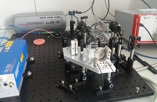 Schnelles Phasenschieben durch Wellenlängen-Tuning über den Strom durch einen Diodenlaser.
